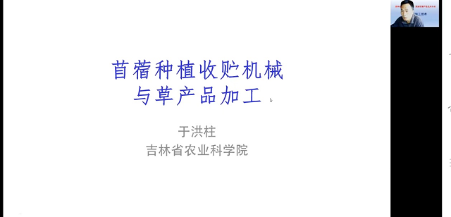 吉林省农业科学院、国家牧草产业技术体系岗位科学家王志峰老师做了吉林省苜蓿栽培技术专题讲座,吉林省农业科学院于洪柱老师对苜蓿种植收贮机械与草产品加工进行了授课。结合吉林省实际,从苜蓿选种、播种、田间管理、收获、加工及机械设备等方面进行了细致讲解。