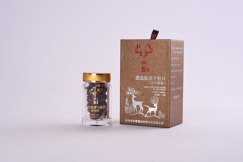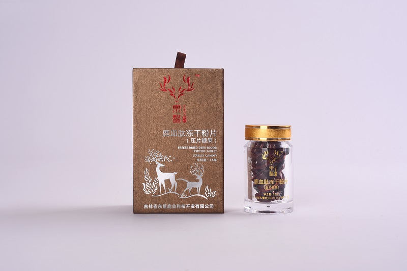 东鳌鹿血肽冻干粉片,选用经严格检疫的、基因优良的双阳梅花鹿优质鹿血为原料,采用现代生物技术进行低温快速冷冻干燥,保持营养物质活性,制成小分子肽片,方便服用,更易吸收,每粒独立包装,携带食用更便捷。