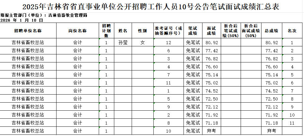 2025年吉林省省直事业单位公开招聘成绩公示(10号公告)