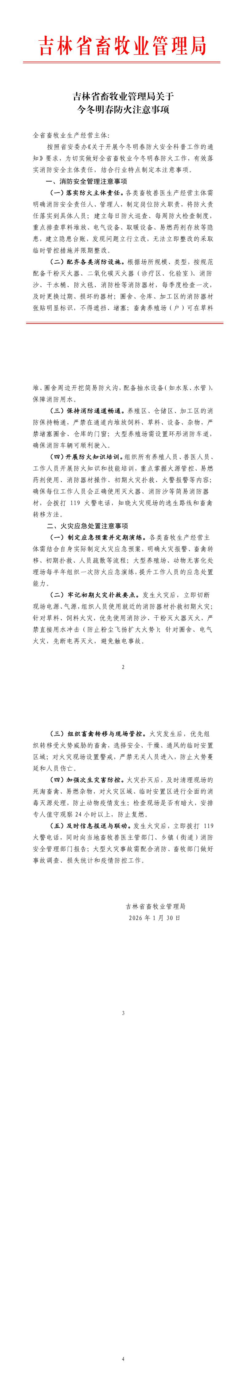 吉林省畜牧业管理局关于今冬明春防火注意事项