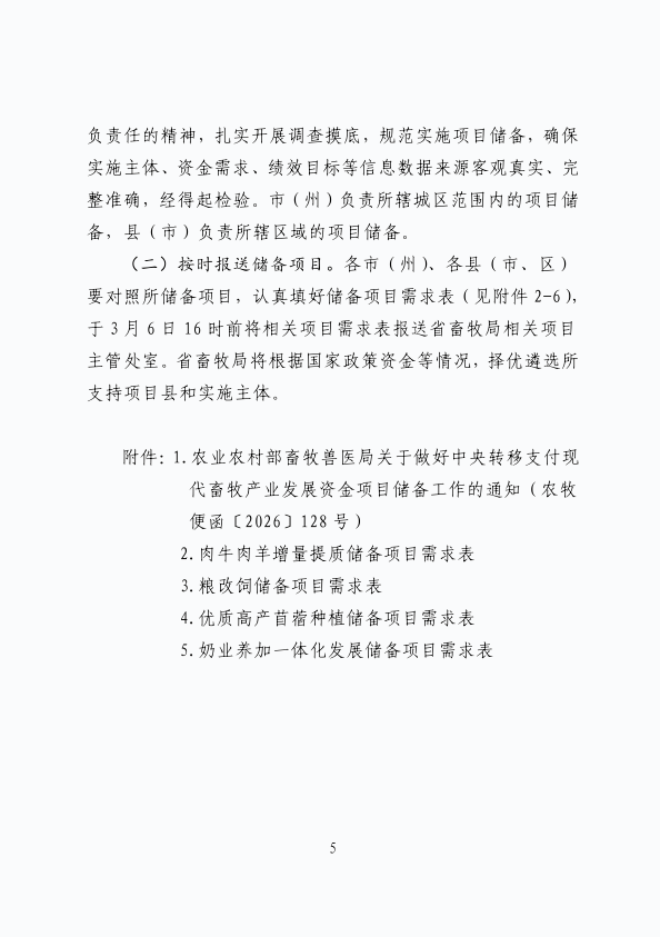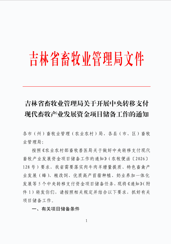 吉林省畜牧业管理局关于开展中央转移支付现代畜牧产业发展资金项目储备工作的通知