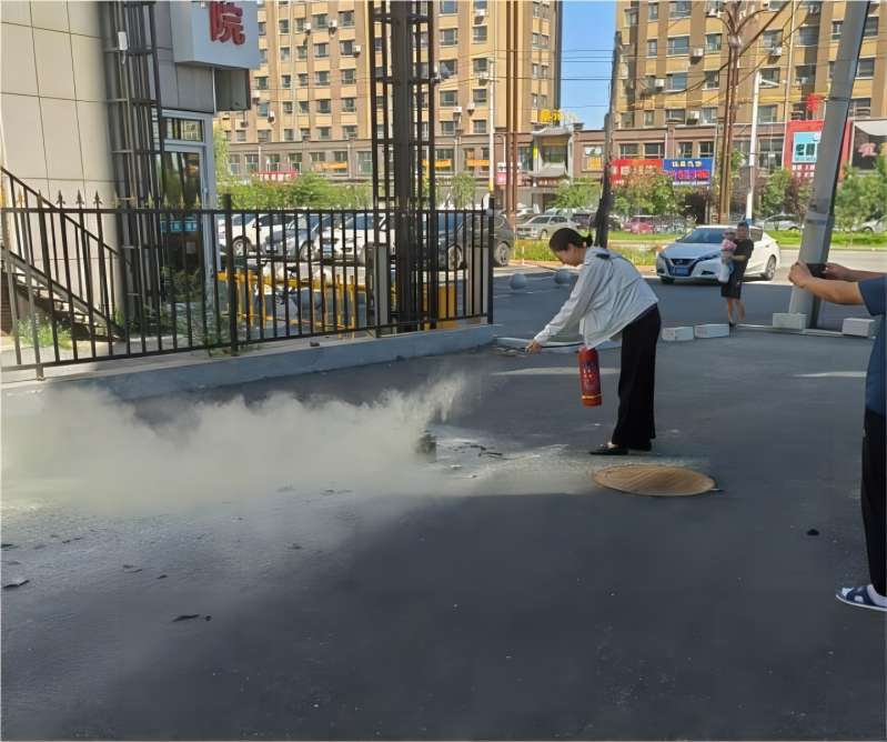 本次演练模拟了实验室操作人员受伤应急处理并按规定流程依次进行紧急报告、伤口处理和事件报告等环节措施,同时进行了消防安全演练,由演练参演人员在户外模拟着火地点使用干粉灭火器扑灭火情。